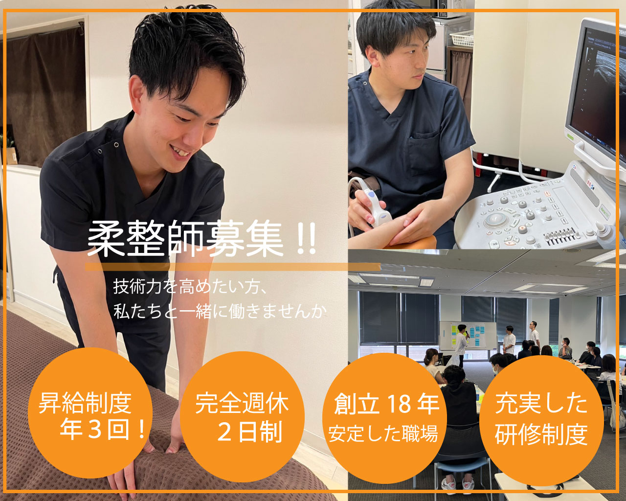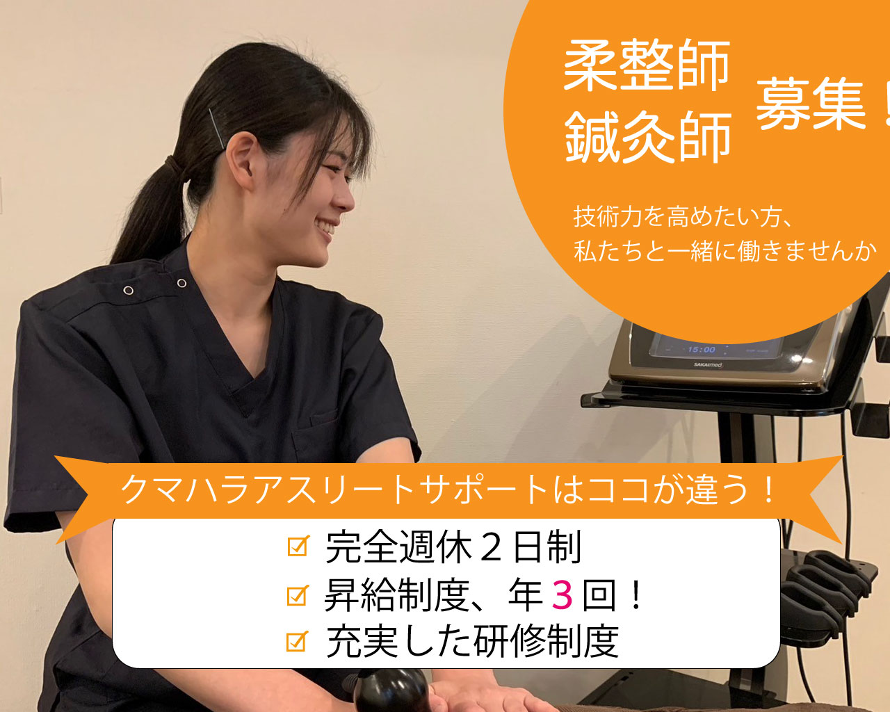 - 当院の熊原代表は阪神タイガース、新庄剛パーソナル・トレーナー(アメリカ時代も帯同)、東北楽天イーグルスコンディショニングディレクター、WBC侍ジャパン日本代表のトレーナーなど、豊富な経験と実績を持つ本物のプロフェッショナルです!そんな「現場」を知り尽くしたプロと働き、学ぶということは、他では叶わないスピード感で成長できるということ。外観は普通の治療院ですが、中に入るとプロトレーナールームと同じ最新の設備を導入。最先端の治療プログラム、全院で最新エコー画像検査も導入し、微細な骨損傷も見逃さないで「どんな症状も治してくれる」と患者様からも高い信頼をいただいています^^ こんな治療院、なかなかないと思いますので、興味を持っていただけたら応募後の見学から始めませんか! [熊原代表の経歴] ◆1992~2001年 阪神タイガース・トレーナー ◆2001~2002年 新庄剛パーソナル・トレーナーとして渡米 ◆2010~2014年 東北楽天イーグルスコンディショニングディレクターとして優勝に貢献 ◆2013年 WBC・侍ジャパン日本代表のトレーナーとして帯同 その後もプロアスリートや大学チームからや、講演会の講師などさまざまなオファーが絶えない治療家です